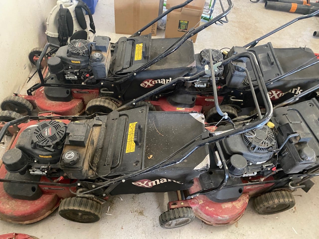 Early in my lawn care career we used large mowers to save us time, and keep us from walking 20 miles per day. While large mowers do help with both of those items, we feel the cons outweigh the pros and stopped using them years ago. One major issue we had was accidentally breaking sprinklers. Although we were as careful as we could it seemed like every couple days we would be replacing clients broken sprinklers which was time consuming, expensive, and really made us look unprofessional. As a result we switch to using the 30 inch walk behind mowers pictured below, and they have solved this problem. For a homeowner equivalent we recommend looking into the Toro Timemaster.